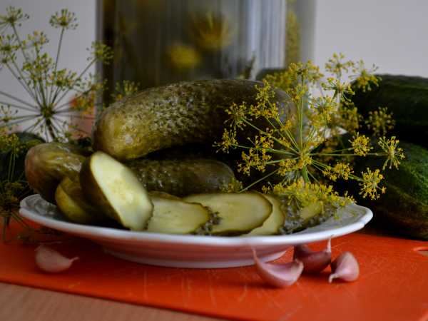 По желанию будем доставать квашеные огурцы и нарезать их на стол.
